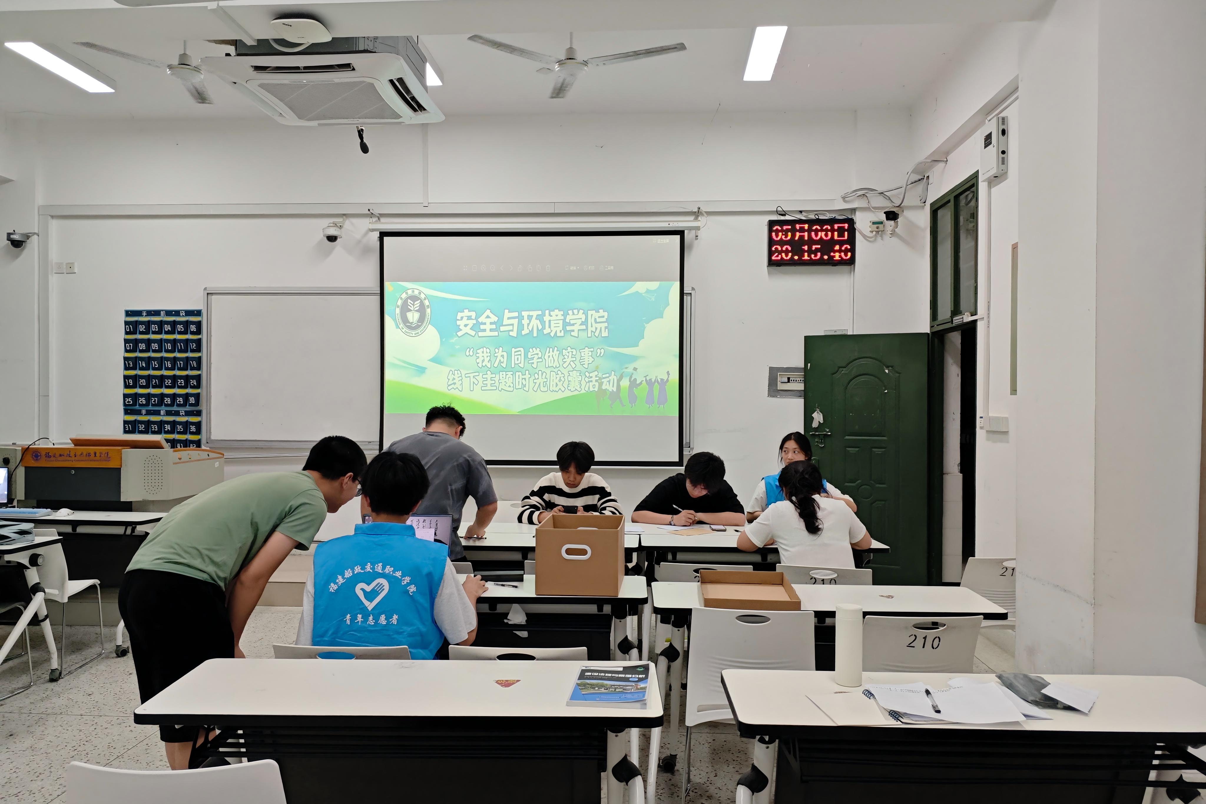 2025年5月6日,安全与环境学院在福船园创新楼210教室成功举办“时光胶囊”主题交流活动,60名学生参与。