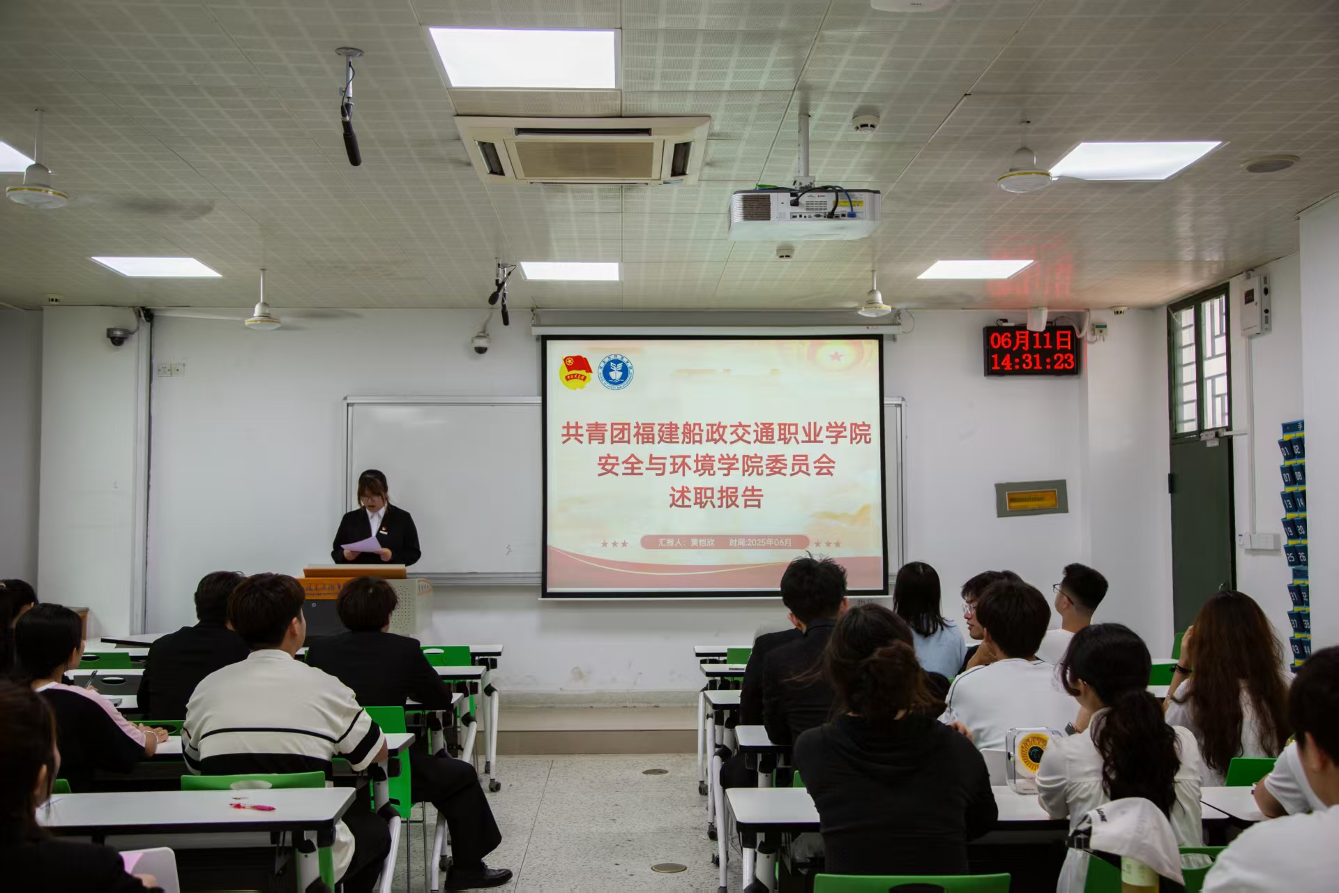 2025年6月11日,安全与环境学院2024-2025学年第二学期团委学生会干部述职会议在福船园校区创新楼201教室顺利举行。学院团委书记彭志允、团委副书记徐林悦慰、团委宣传委员李花出席本次会议,院团委学生会全体干部及各班级学生代表参加了本次会议。