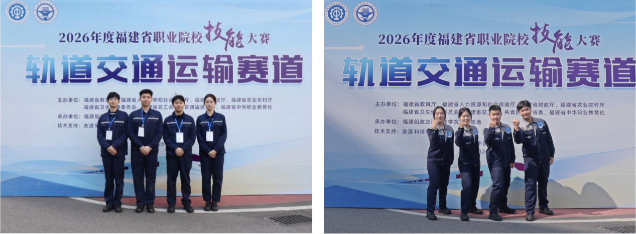 1月12日,2026年度福建省职业院校技能大赛“轨道交通运输”赛道在福建船政交通职业学院圆满落下帷幕。经过为期两天的激烈角逐,我院两支代表队(一队选手:李玮杰、王希盈、林智贤、曾振槟;二队选手:郑万强、周清兰、李豪、顾悦晗)凭借扎实的操作技能、默契的团队配合,在18支参赛队中脱颖而出,分别荣获金奖、银奖(赛道总分排名第1、2),为我院争得了荣誉。