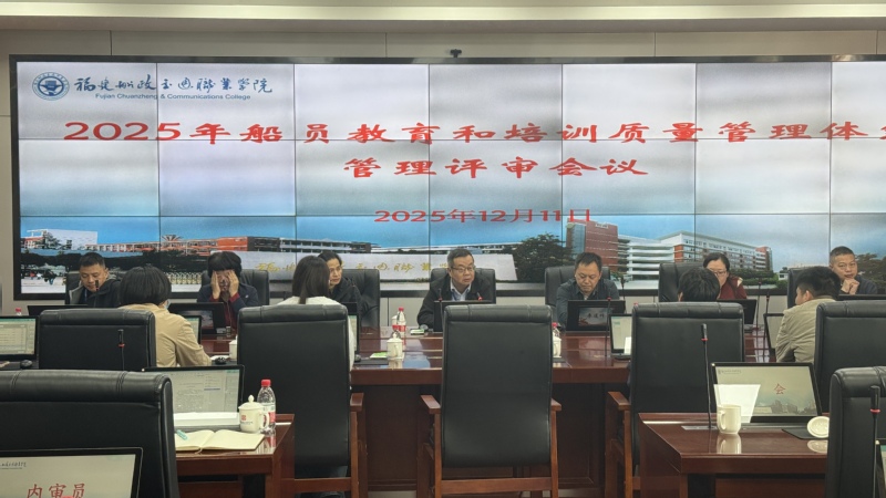 2025年12月11日上午,学院在行政楼6楼会议室召开2025年船员培训质量管理体系管理评审会。管理者代表陈常晖副院长、受控部门负责人、内审组审核员和质量管理员参加会议。