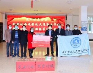 2月27日下午,郭建康、李树青、杨达、马奇伟四位校友代表泉州校友会向母校捐赠口罩、额温枪等防疫物资,爱心企业家福建富民云咖信息科技有限公司郑旺泉总经理等向学院捐赠一次性医用口罩等防疫物资。学院党委副书记陈宜大,校友会会长、副院长陈艳红参加捐赠活动。