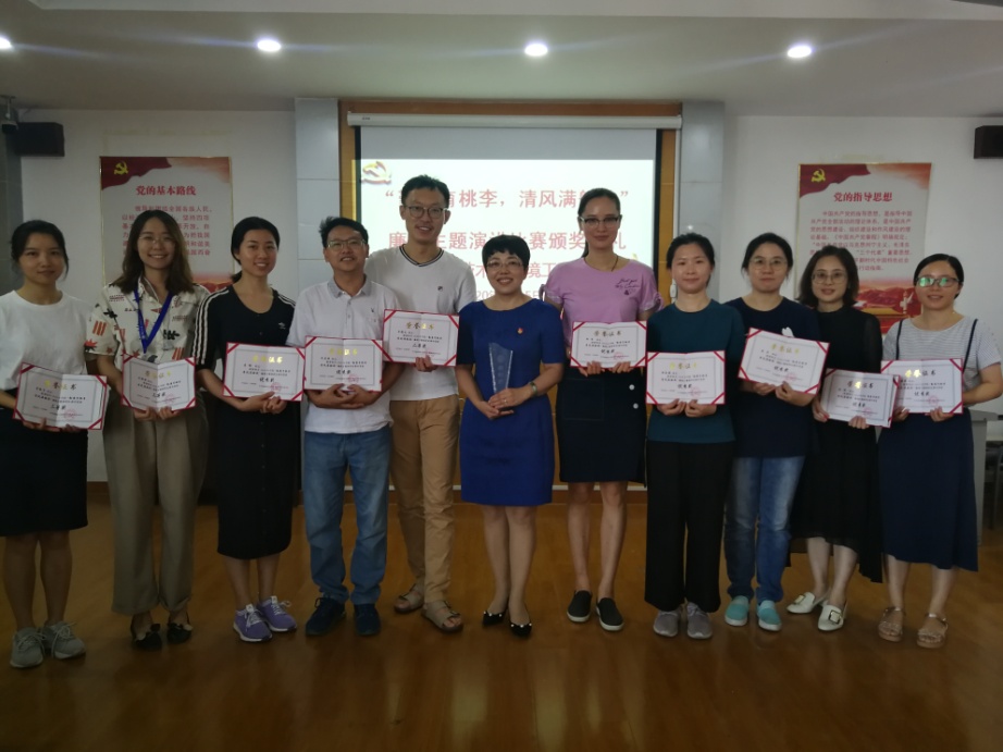 经过激烈角逐,我系共有11位老师获奖,其中牟鹏飞老师的作品《廉洁清风,“镜”我心灵》获二等奖,吴绿璇老师的作品《新时代的“先生”》 、吴树铮老师的作品《“清风”相伴,“廉花”盛开》和李梅子老师的作品《廉洁修身,清正育人》 获三等奖,其余7位教师的作品获得优秀奖。安全技术与环境工程系党总支获“勤廉育桃李,清风满船政”廉政主题演讲比赛组织奖。系部于2020年7月15日在科技楼909会议室举行了“勤廉育桃李,清风满船政”廉政主题演讲比赛颁奖仪式。