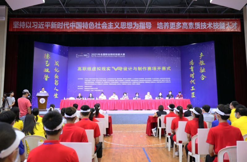 据悉,2021年全国职业院校技能大赛高职组虚拟现实(VR)设计与制作赛项共有来自全国各省(市)、自治区和新疆生产建设兵团的27支代表队参赛,参赛选手、指导教师、各类专家共计200多人。该赛项以虚拟现实内容制作行业典型项目为背景,以虚拟现实项目设计、虚拟现实模型制作、虚拟现实动画资源创建、虚拟现实交互实现为技术模块,以虚拟现实应用中的典型案例和虚拟现实技术应用专业的核心教学内容作为竞赛内容,竞赛方式和竞赛内容逐步对标世界技能大赛。大赛旨在贯彻习近平总书记重要指示和全国职业教育大会精神,推进“岗课赛证”综合育人,发挥大赛对教学引领示范作用,促进VR人才的培养,加强校企产业接轨,培养更多高素质技术技能人才、能工巧匠、大国工匠。