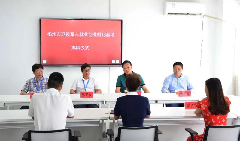 2021年6月4日上午,“福州退役军人就业创业孵化基地”揭牌仪式在我院新实训大楼创新创业创造孵化基地举行,福州市退役军人事务局副局长袁朝海、福州市退役军人服务中心相关人员,学院党委副书记陈宜大以及培训学院、创新创业学院相关负责人参加仪式。