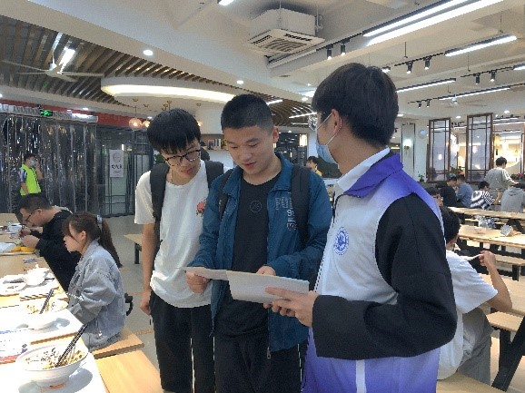 为了提高人们对粮食安全的认识,学院组织粮食安全宣传志愿者,利用新生期间,前往宿舍、食堂、教室发放粮食安全宣传手册,一对一宣传节约粮食知识,指导同学们、健康消费,避免浪费粮食。