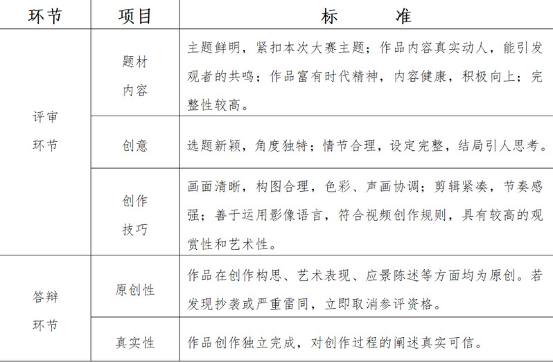 参赛作品应坚持原创,以学生自编、自导、自演、自拍为主,思想观点正确,内容健康向上,故事情节生动,具体可感,人物形象鲜活。