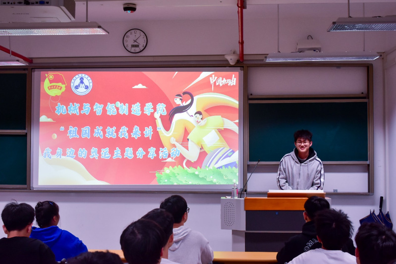 机械与智能制造学院举行“祖国成就我来讲”——我身边的奥运主题分享会活动,一起感受“一起向未来”的中国式浪漫。通过活动,同学们深刻理解冬奥精神,增强了民族自豪和文化自信。同学们表态,要趁年轻抓住大好时光,把个人梦融入中国梦,立志成才、向上向善,担复兴大任、做时代新人,在全面建设社会主义现代化国家伟大实践中奋勇争先、建功立业。