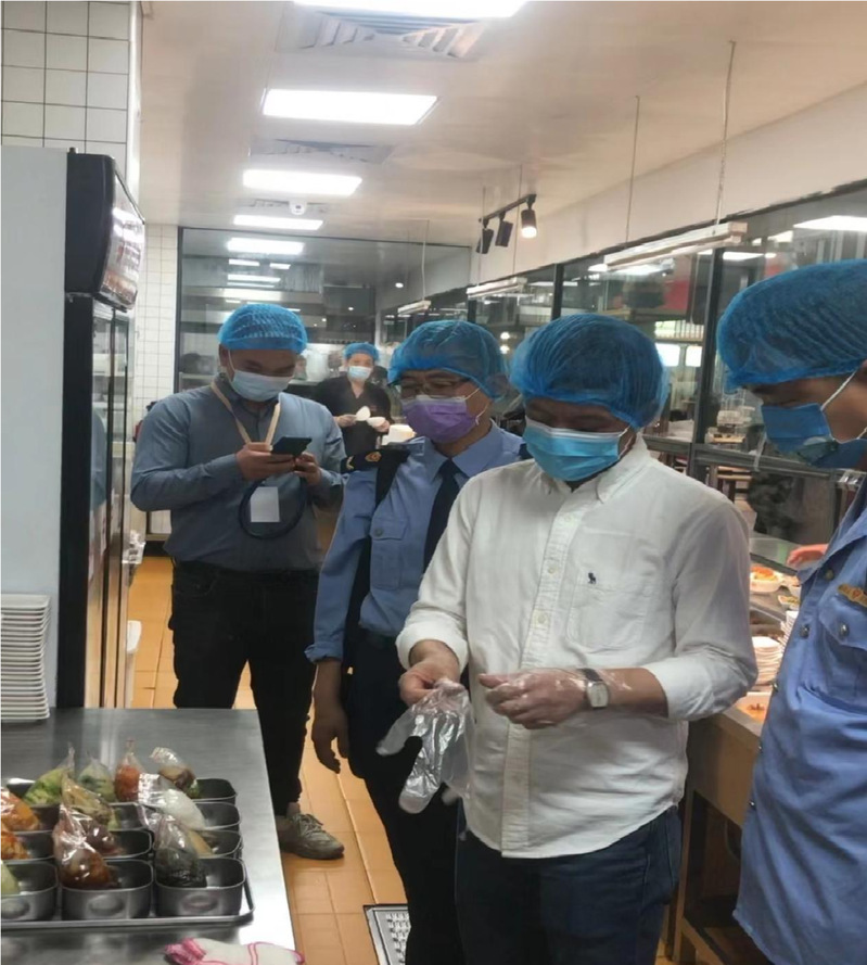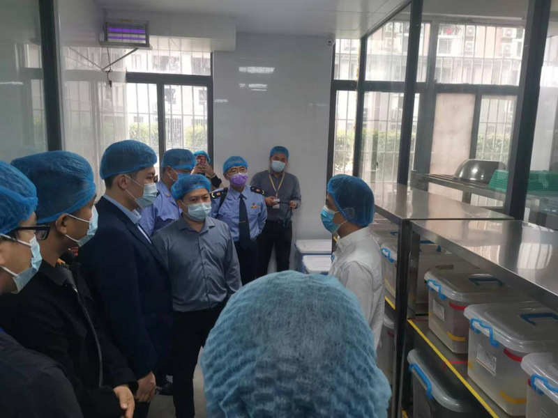 检查组一行重点检查了食堂疫情防控管理相关情况、食品进货台账、员工健康管理、餐品留样及场所设备设施清洁维护等,现场提出了专业的指导意见。