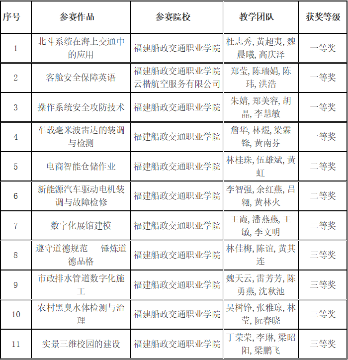 2023年福建省职业院校技能大赛教学能力比赛我校获奖名单汇总表