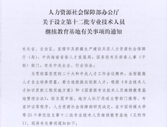 近日,人力资源社会保障部办公厅下发《关于设立第十二批专业技术人员继续教育基地有关事项的通知》,公布了包含25个单位的全国第十二批专业技术人员继续教育基地名单,我校榜上有名。