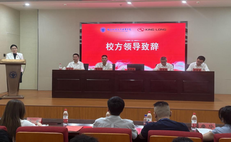 开班仪式上,陈艳红副院长发表热情洋溢的致辞,深刻阐述了“以教促产、以产助教”的核心理念,强调通过延伸教育链、服务产业链、支撑供应链、打造人才链、提升价值链,构建产教深度融合的生态系统。她寄语“金龙班”的学子们,要珍惜学习机会,扎实理论基础,勇于实践探索,提升国际视野,在厦门金龙的广阔平台上绽放青春光彩,成为推动中国客车行业国际化进程的中坚力量。