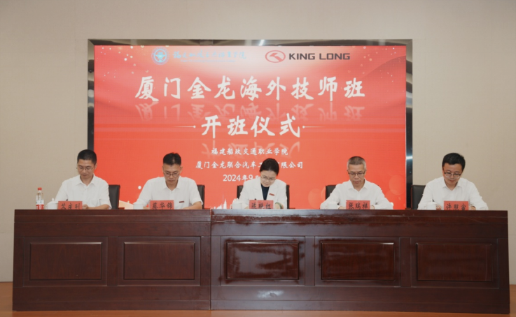 近日,福建船政交通职业学院与厦门金龙联合汽车工业有限公司召开校企战略合作推进会及“厦门金龙海外技师班”开班仪式。学院党委委员、副院长陈艳红,厦门金龙联合汽车工业有限公司党委委员、人力资源总监张瑞祥,以及双方相关部门负责人参加会议。