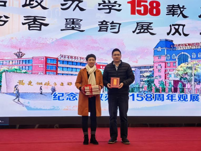 开展“船政办学158载庆,书香墨韵展风华”观展阅读活动,特邀福建师范大学图书馆馆长吴巍巍进校开展专题讲座。讲座结束后,吴巍巍馆长向图书馆捐赠了《推进朱子学与闽学的深入研究》等17册图书。师生共同参观《严复史绩展》《甲午甲申闽籍优秀船政学子纪念展》,领取校庆纪念明信片盖纪念章,现场还开展了观展答题趣味活动,吸引近千名学生参与,让学生在参与活动的同时,了解校史,学习船政文化的内涵和价值,弘扬船政文化精神。