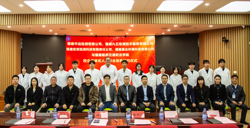近日,学院与福建华远检测有限公司、福建九五检测技术服务有限公司、福建宏其检测科技有限责任公司、福建嘉合环境科技有限公司等4家环境检测与治理龙头企业举行校企订单式人才联合培养签约仪式,学院副院长陈常晖、福建华远检测有限公司总经理郭绵城、福建九五检测技术服务有限公司总经理倪基伟、福建宏其检测科技有限责任公司总经理冯骞、福建嘉合环境科技有限公司总经理宋洪忱等企业领导出席仪式,教务处、安全与环境学院负责人,订单班签约学生及安全与环境学院师生代表参加了活动。