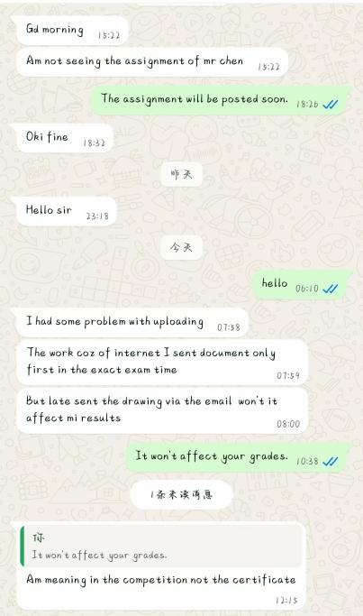 面对线上培训挑战,郑志娴、李伙钦两位老师主动领题攻坚。他们紧扣赛事技术标准,立足学员学情,量身定制课程体系,精讲移动开发原型设计、实操技巧及功能测试;培训期间实时答疑、逐行调试逐案优化,累计完成7天、42小时系统授课,并高质量完成培训作业布置、比赛试题评阅等任务,确保每位学员夯实基础、自信上场。