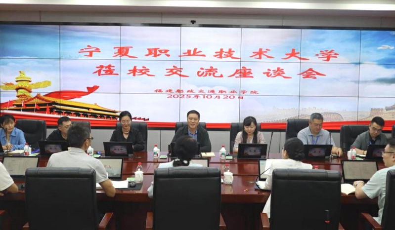 为深入贯彻落实闽宁教育对口协作机制,不断拓展两校合作交流内涵,10月20日,宁夏职业技术大学党委委员、纪委书记马建荣率挂职团队莅校开展调研交流。学院党委副书记、院长陈群,纪委书记谢建山,副院长陈艳红出席交流活动。宁夏职业技术大学教务处、组织人事部负责同志及11名挂职干部,学院双高办、人事处、教务处、科技处、数据中心、机械与智能制造学院、信息与智慧交通学院、经济与管理学院、马克思主义学院、教师工作部负责同志参加了交流活动。