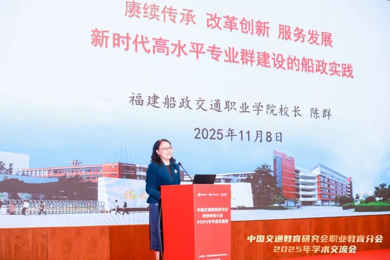 会上,陈群教授作为全国交通职业教育领域的首位发言代表,以《赓续传承 改革创新 服务发展——新时代高水平专业群建设的船政实践》为题,围绕党的二十届四中全会精神要求,从“传承船政精神、深化改革创新、坚持服务宗旨”三大维度,系统展示了我院在产教融合、教学改革、国际交流、闽台合作以及数智赋能职业教育等方面的实践成果,并阐述了学院践行创办者沈葆桢确立的“精益求精、密益求密”的质量精神,发挥工科办学优势,锚定区域经济与产业特色,助力制造强国、质量强国、航天强国、交通强国、网络强国建设,服务区域经济社会发展的创新蓝图与行动方案。陈群的发言引起了与会领导、行业专家和职教同仁的广泛共鸣。