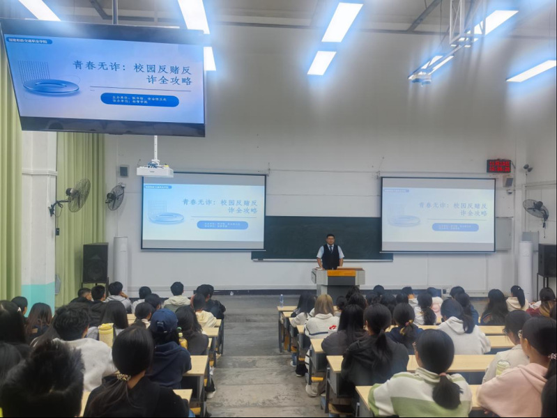 讲座紧扣“青春无诈”主题,结合讲师多年金融反诈实践经验,以“精准识骗、优化管理、防护普法、升级反诈、反诈急救、践行反诈”六大板块为框架展开:从“冒充客服退款”“刷单返利”等学生群体常见骗局的识别技巧,到校园账户安全管理、个人信息保护的具体方法;从《反电信网络诈骗法》等法规解读,到遭遇诈骗后的紧急止损流程;再到倡导“全民反诈”理念、鼓励师生主动参与宣传,内容既具专业性又贴近日常,为师生织密反诈“知识网”。通过真实案例剖析、结合学生的兴趣热点互动,将晦涩的反诈要点转化为易懂的生活指南,现场师生积极提问,氛围热烈。