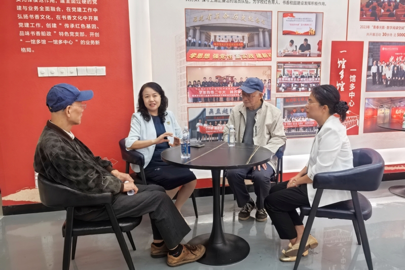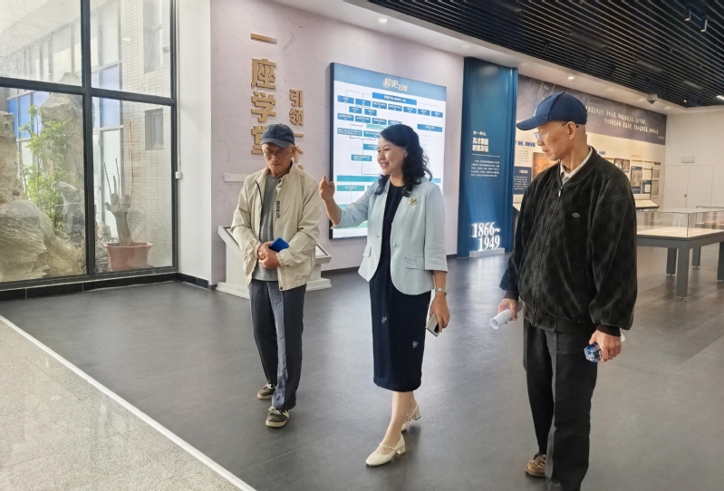仪式结束后,陈明光先生和叶华先生在陈群及图书馆负责人的陪同下参观校史馆,并进行座谈交流。陈群介绍了学院办学历程和成效,她表示,学院始终秉承船政学堂 “产教融合、开放办学”的办学精神,在高技能人才培养、促进学生高质量就业、深化闽台交流合作等方面持续发力,取得了一系列成果。陈明光先生和叶华先生对学院在服务支撑地方支柱产业、推动其转型升级方面取得的显著成效给予了高度评价,他们表示将继续关注学院发展,祝愿学院各项事业蓬勃发展,蒸蒸日上。