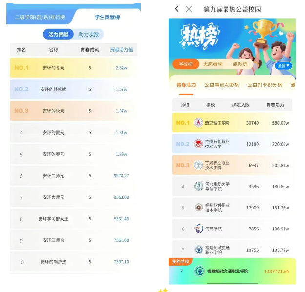 今年,第九届最热公益校园 “益动青春” 主题活动启动后,为了让更多同学加入这场爱心接力,志愿者们走进班级,用生动的讲解拆解活动流程,让活力值领先的同学分享 “攒活力” 的小技巧;校园里的宣传帐篷前总是热热闹闹,咨询台的志愿者耐心解答疑问,线上的广泛宣传搭配线下的贴心互动,让 “参与公益” 变成了同学们争相打卡的校园新风尚。