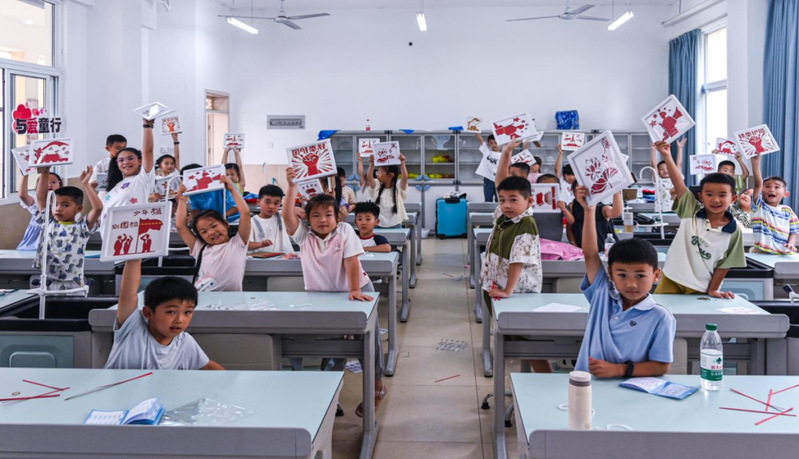 在红色博史课堂上,英雄故事与船政历史交相辉映,互动分享中萌发爱国种子;在蓝色致知课堂里,3D 打印笔、水果电池等趣味实验点亮科技梦想;在橙色育美课堂中,扎染、剪纸等沉浸式体验传递非遗温度;在黄色动能课堂上,互动游戏让孩子们在协作中学会坚守;在绿色匠心课堂里,茶园采茶实践让孩子们体悟责任担当。五彩课堂以多元形式,为乡村孩子护航成长。