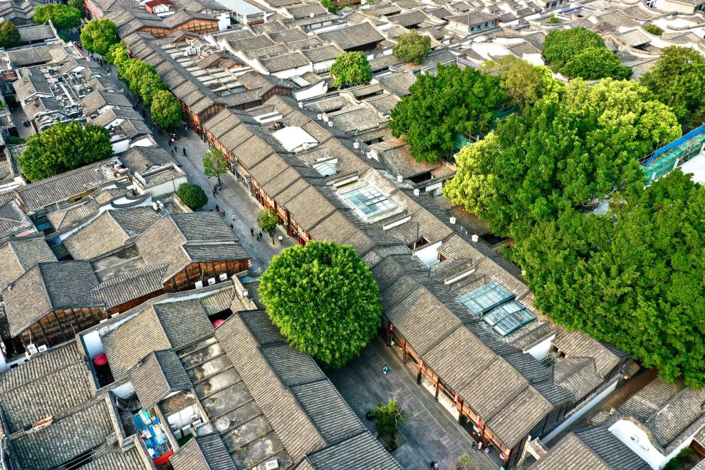 福州三坊七巷文化街区的古厝绿树(2021年3月17日摄,无人机照片)。 新华社记者姜克红摄