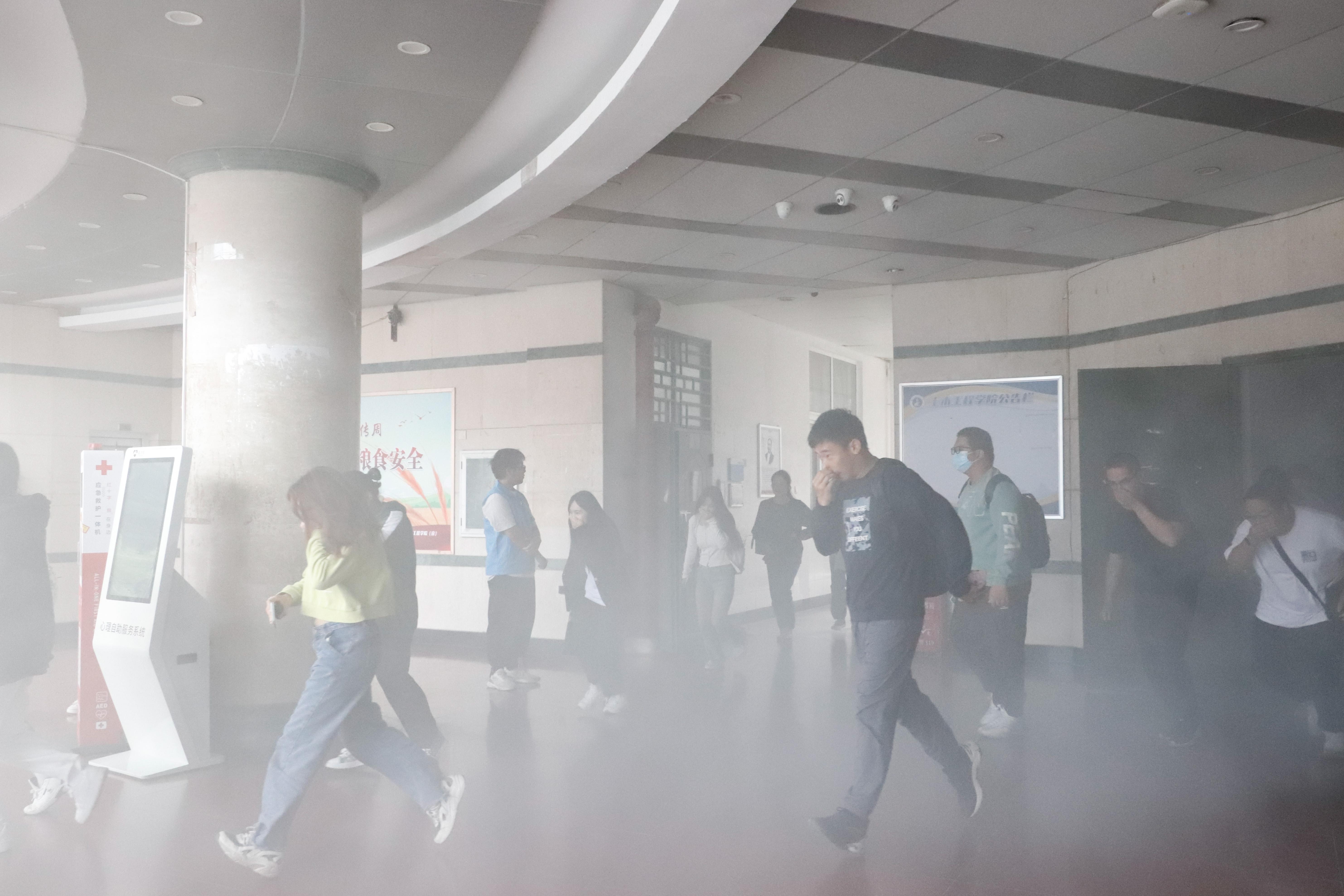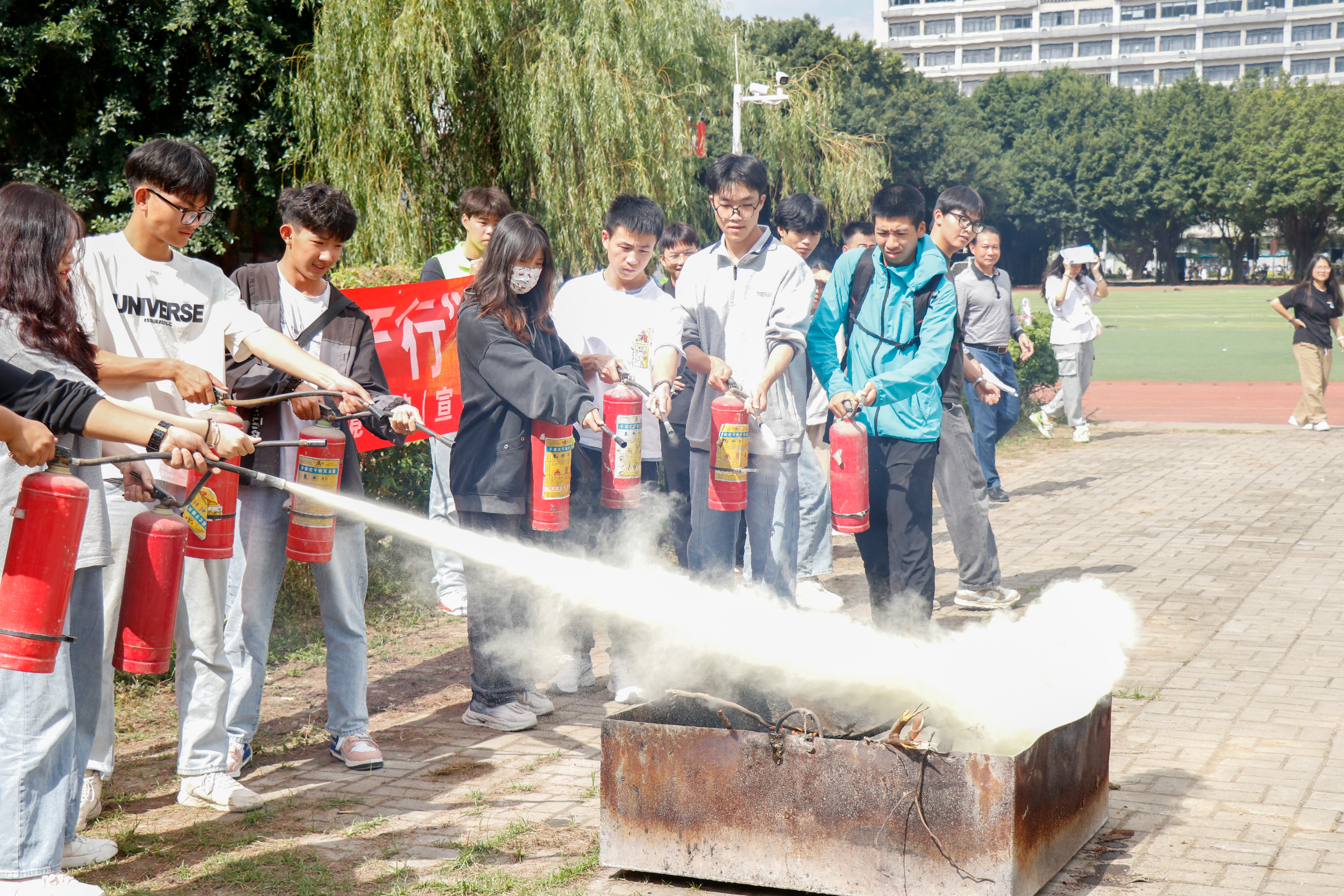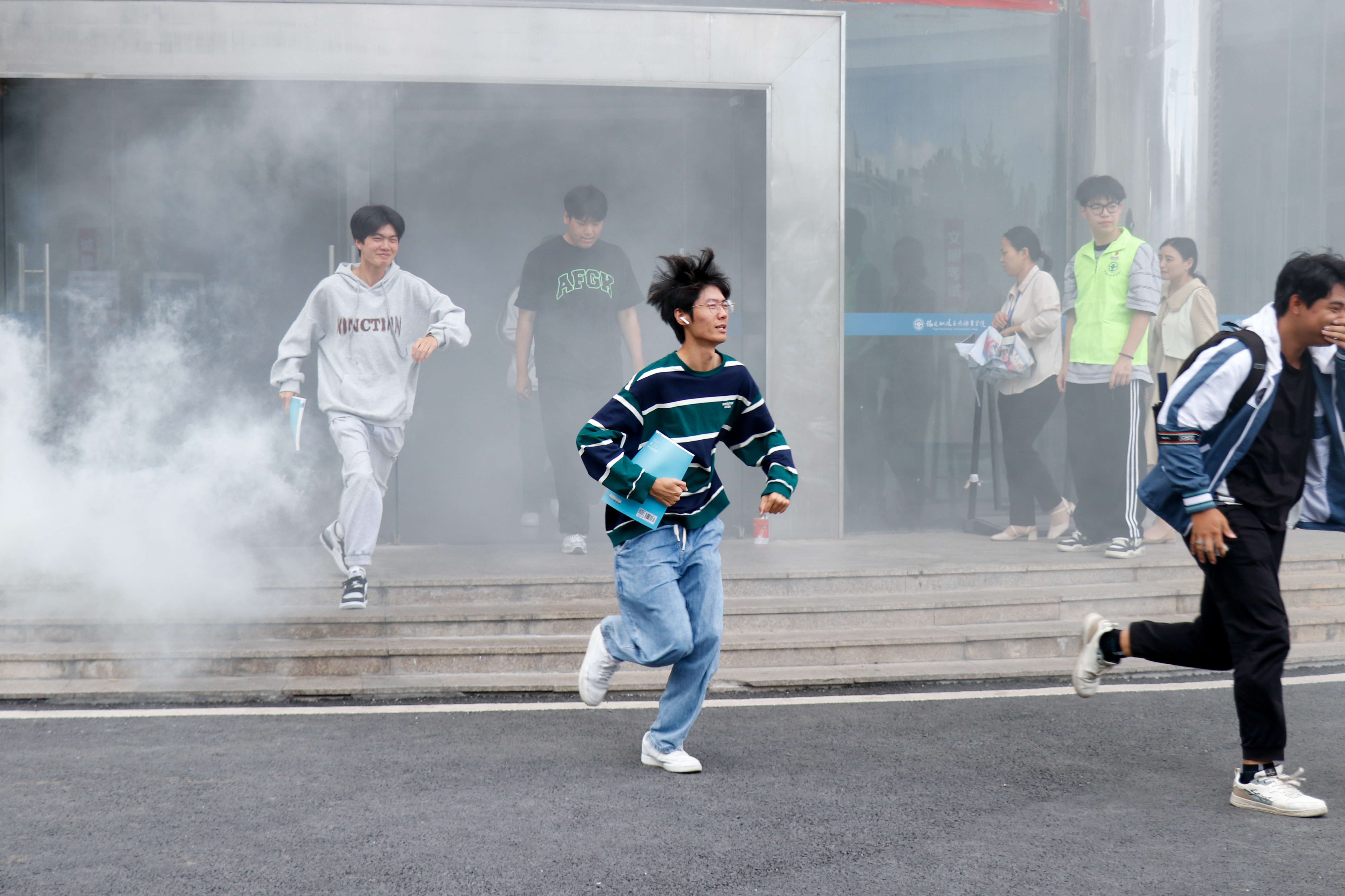 在演练开始前,工作人员为同学们讲解了消防安全基础知识及安全逃生路线,让大家充分认识到火灾的危险性。警笛响彻云霄,烟雾弹喷出一股股浓烟,同学们一个个保持冷静,捂住口鼻,弯腰低姿,按照指定路线有序地进行疏散,快速安全地抵达了操场。紧接着,朱秋明同学向大家讲解灭火器的正确使用方法,随后让同学们分批进行灭火器的使用体验。最后,陈火城老师为同学们普及了宿舍的消防常识、用电的安全注意事项等内容,徐林悦慰老师对本次逃生演练进行了总结,并提醒同学们要不断增强安全意识,正确掌握在危险中迅速逃生、自救、互救的基本方法。