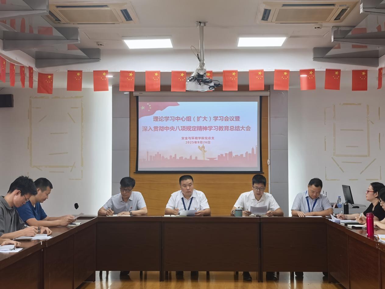 9月26日上午,安全与环境学院在会议室909召开理论学习中心组(扩大)会议暨深入贯彻中央八项规定精神学习教育总结大会。会议由党总支组织委员、副院长范自盛主持,学院中心组成员、教师代表及学生代表参加。