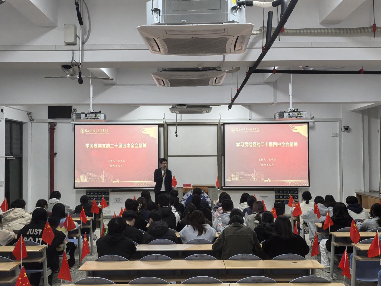 12月29日晚,安全与环境学院党总支副书记、院长陈明仙在创新楼202教室为我院2025年第二期分党校学员作《学习贯彻党的二十届四中全会精神》的专题宣讲。