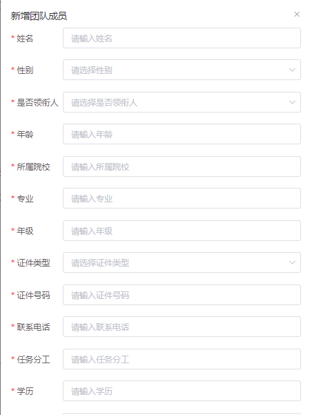 (2)填写团队成员(团队成员第一位必须是领衔人),点击右上角“+新增团队成员”