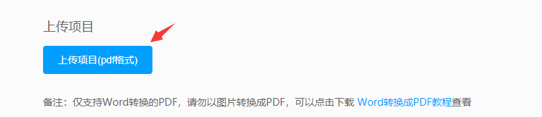 4)点击“上传项目(PDF格式)”,(备注:仅支持Word转换的PDF,请勿以图片转换成PDF,可以点击下载Word转换成PDF教程查看),上传项目。