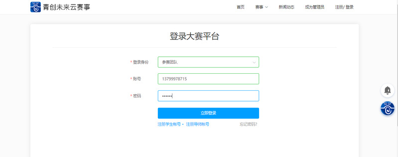 2.1 参赛团队用户登录