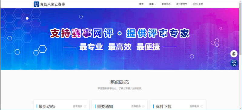第一步:在学校三创教育综合服务平台上选择“赛事管理”(https://fjcpc.91ready.com/#/)或输入网址(https://fjcpc-match.91ready.com/#/),登录大赛服务平台。