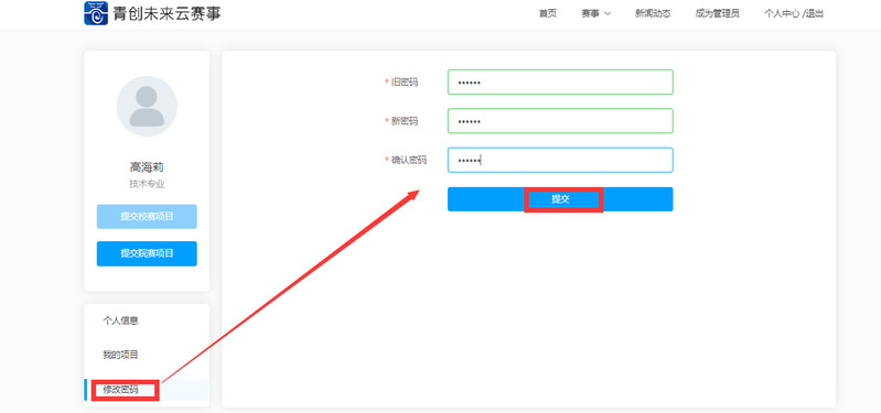 输入旧密码,设置新密码和确认新密码,点击“提交”后即可成功修改密码。