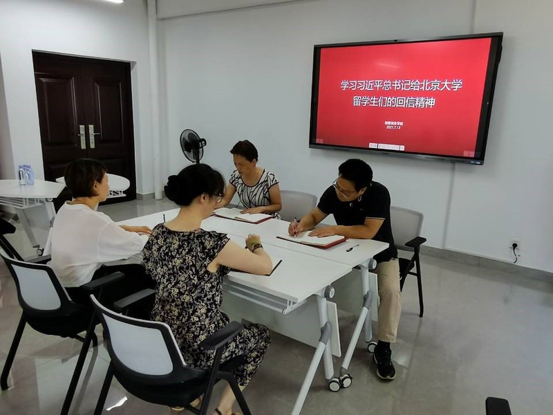 学习习近平总书记给北京大学留学生的回信后,大家纷纷表示:我们要深刻领会把握回信的重大意义,要提高政治站位,要认真学习党史,学习革命家艰苦创业精神,要组织好红色筑梦之旅活功,引导学生走进革命老区、贫困地区和城乡社区,接受思想洗礼、加强实践锻炼。扎实做好学史明理,学史增信,学史崇德,学史力行,进一步推动学生思想政治教育高质量发展。