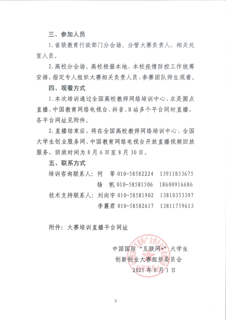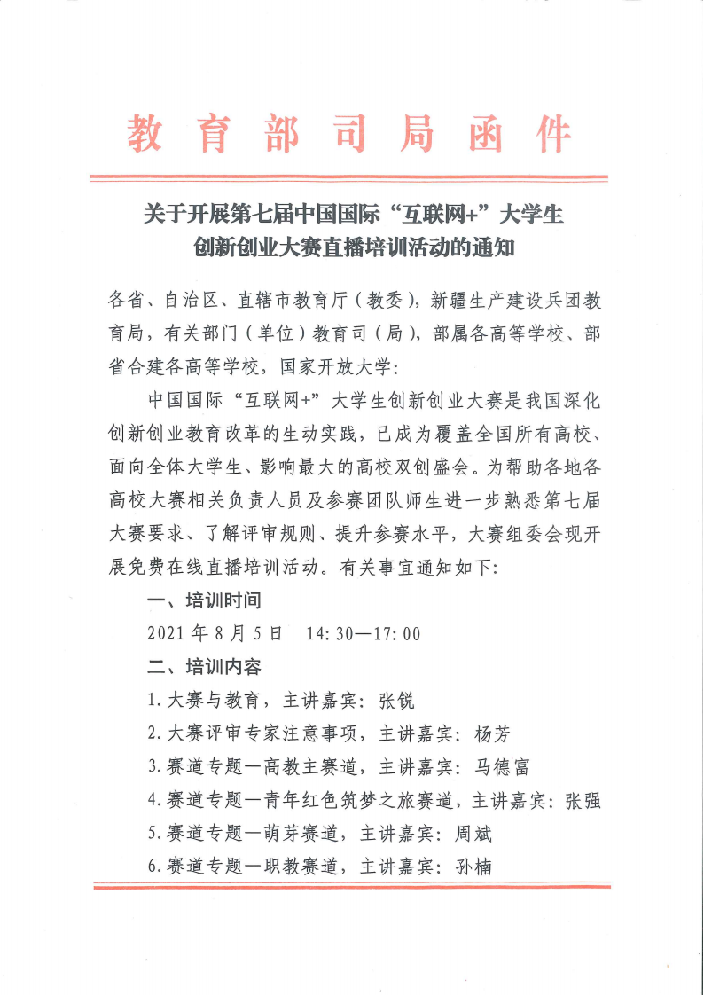 关于开展第七届中国国际“互联网+”大学生创新创业大赛直播培训活动的通知
