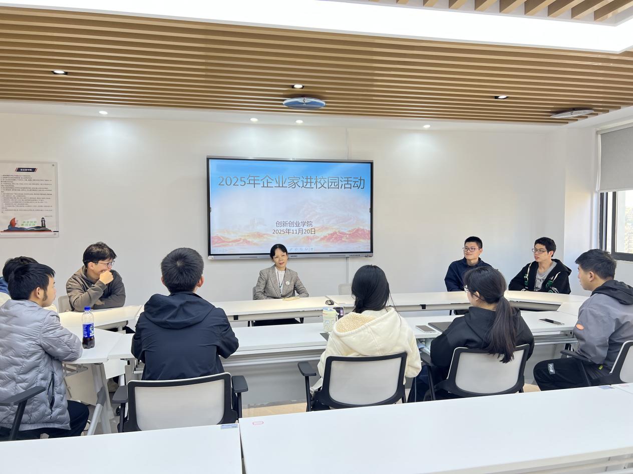 11月20日,创新创业学院在艺新楼806成功举办“2025年校友企业家进校园活动”,邀请三位优秀的校友企业家重返母校,与在校学子进行深度交流。