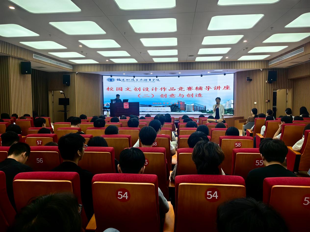 9 月 24 日,我校在福船园艺新楼 334 学术报告厅成功举办以“创新、创意与创造”为主题的文创设计专题船政讲坛活动,各专业教师及学生代表150 余人齐聚现场,聚焦美育与文创融合之道。