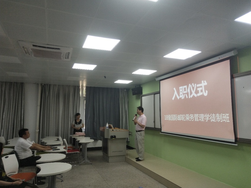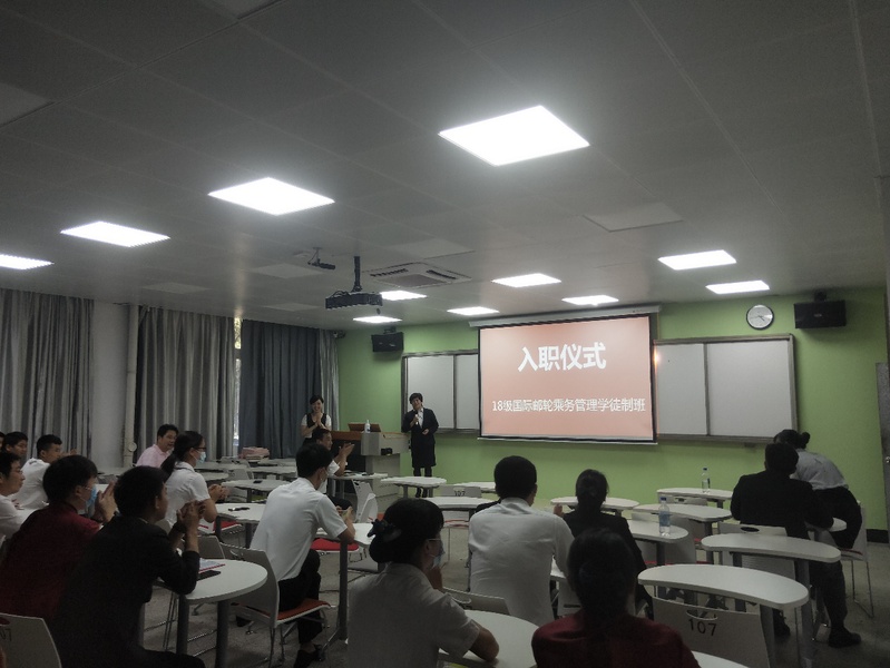 2020年6月15日下午,福建船政交通职业学院航海技术系与厦门建发旅游集团在本院南区31号楼107举行了国际邮轮乘务管理专业现代学徒制班的入职仪式。本次入职仪式是现代学徒制试点继2019年5月5日拜师仪式后的又一重要环节,通过入职仪式,师徒双方一一对接,明确职责,为入职后人才的精准培养开启了新篇章。航海技术系江明光主任、航海技术系伍小明书记、建发旅游集团福州区域人力资源管理培训中心侯巧玲经理等15位导师、国际邮轮乘务管理专业教研室主任、辅导员及2018级国际邮轮乘务管理专业学徒制班学生共同参加了入职仪式。