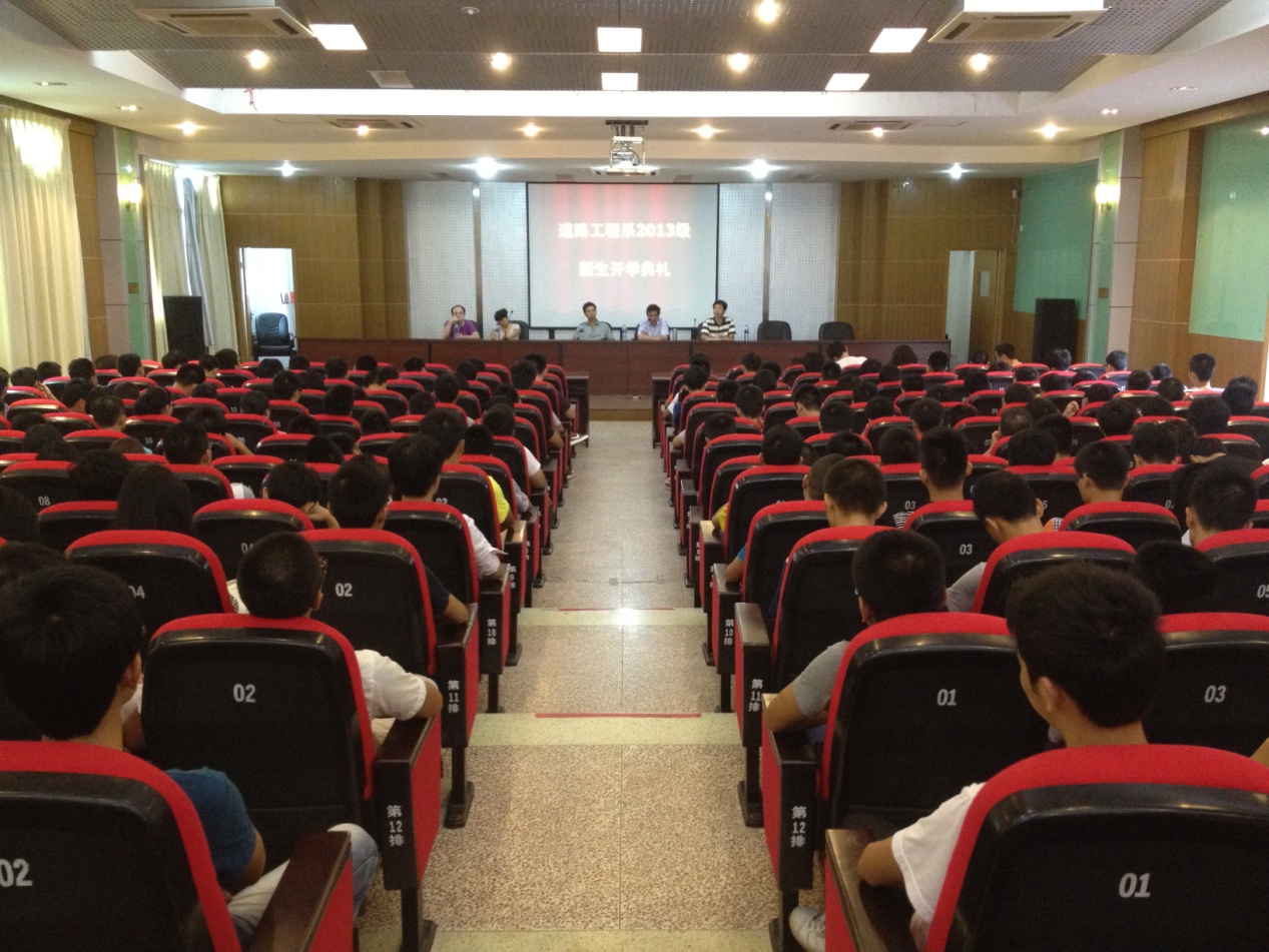 2013年9月12日下午4:30,道路工程系2013级新生开学典礼在一号楼六楼学术报告厅召开。道路工程系书记王心金、系主任周志坚、俞素平副教授、陈勇锋老师、陈艳琼老师、全体辅导员以及300多名学生参加了会议。