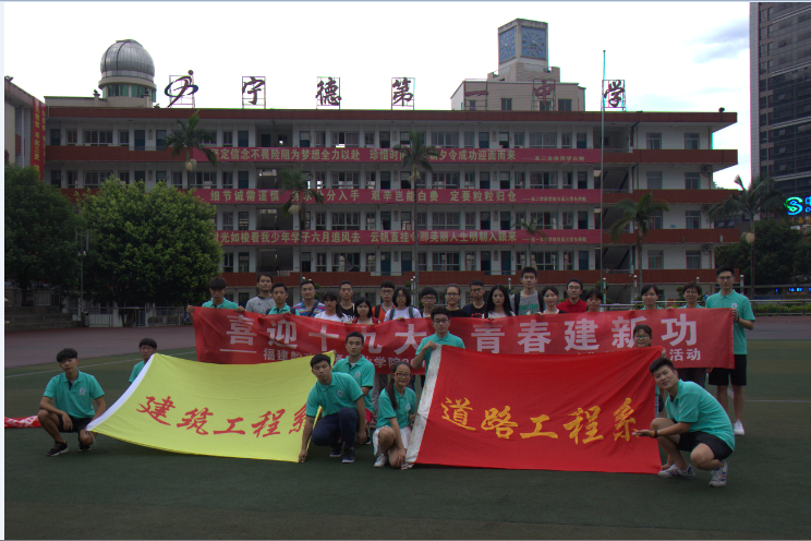 2017年8月10日,建筑工程系与道路工程系暑期社会实践团队(下称“实践团队”)赴宁德开展“三下乡”活动,活动内容聚焦院系招生宣传、纪念中国人民解放军建军90周年、学习廖俊波精神、实地体验廉政文化、青春扶贫等方面。本次活动得到了宁德有关学校团委的大力支持。实践过程中,队员积极参与,吃苦耐劳,圆满完成任务,取得了良好成效。