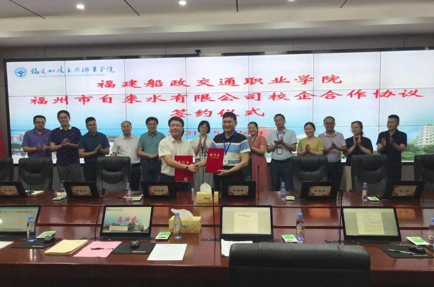 福州市自来水有限公司致力于自来水生产销售、自来水管网建设维护和管道工程施工和二次供水设施设计等技术工作,多次被评为“省级文明单位”,先后荣获“建设部规范化服务优秀单位”、“建设部精神文明建设先进单位”、“福建省思想政治工作优秀企业”,并连续三年四次荣获全国安康杯优胜单位荣誉称号,2009年公司还被授予了"全国五一劳动奖状单位"。根据协议,校企双方将开展技术技能人员培训及课程开发、共建校内外实训基地、实现信息共享。