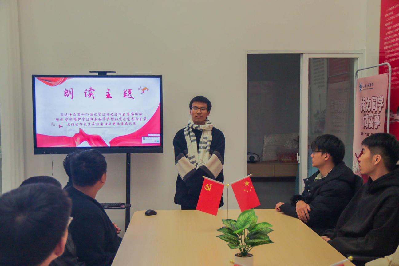 分享会上,23级工程测量技术(3+2)1班团支部书记谢世炜,通过朗读习近平在第十个国家宪法日之际作出重要指示强调的重要文章,引导同学们做到坚定维护宪法权威和尊严推动宪法完善和发展,更好发挥宪法在治国理政中的重要作用。