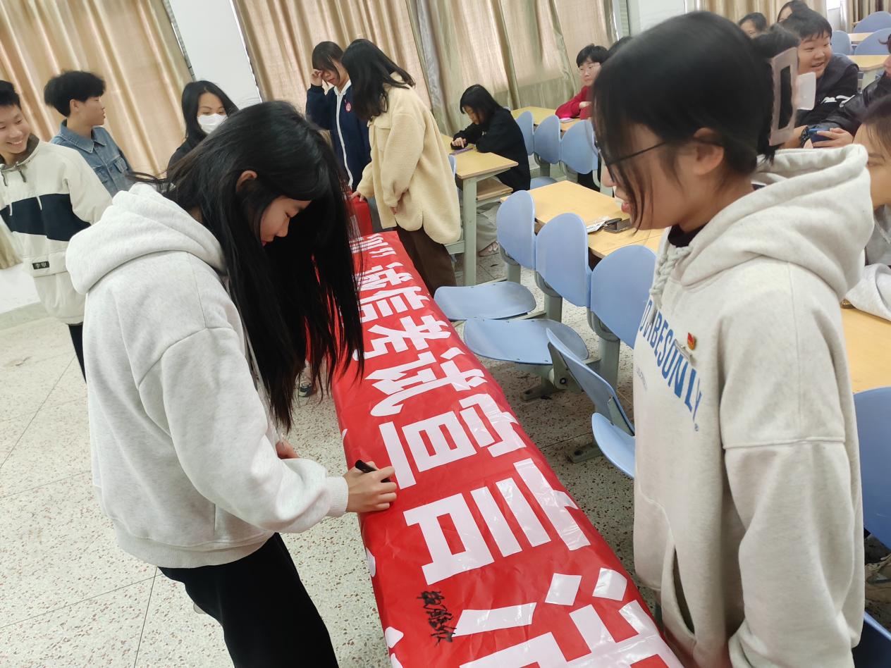 宣誓结束后,同学们纷纷在“谨记考试纪律,秉承求是校训”横幅上留下了自己的名字,表明自己对于诚信考试的坚定决心。