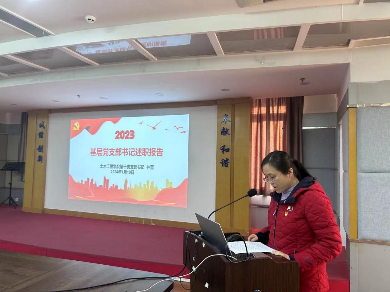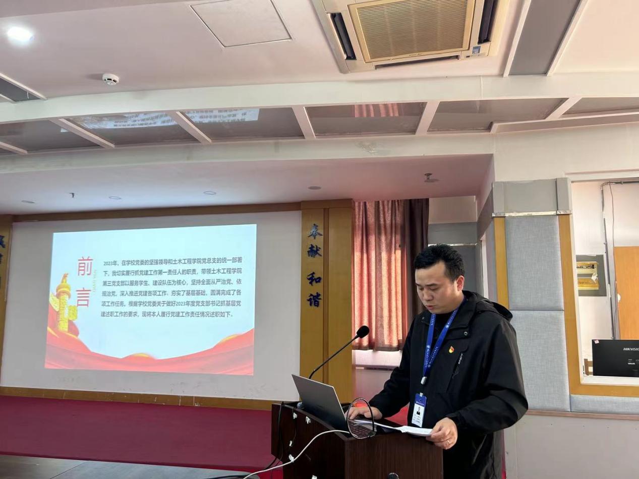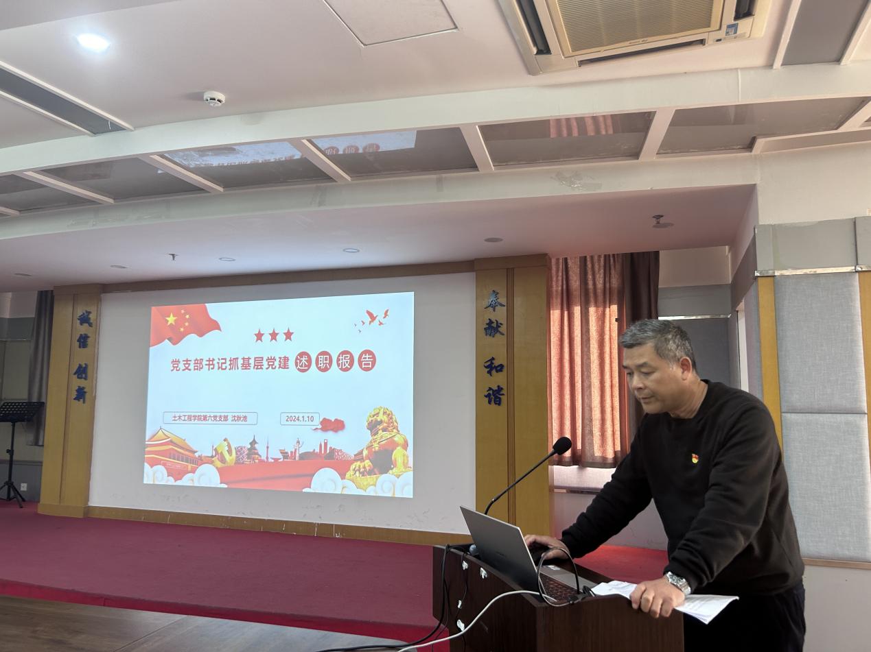 会上,土木工程学院10个党支部书记分别从2023年度履职情况、存在问题及原因、下一步工作计划等开展现场述职。