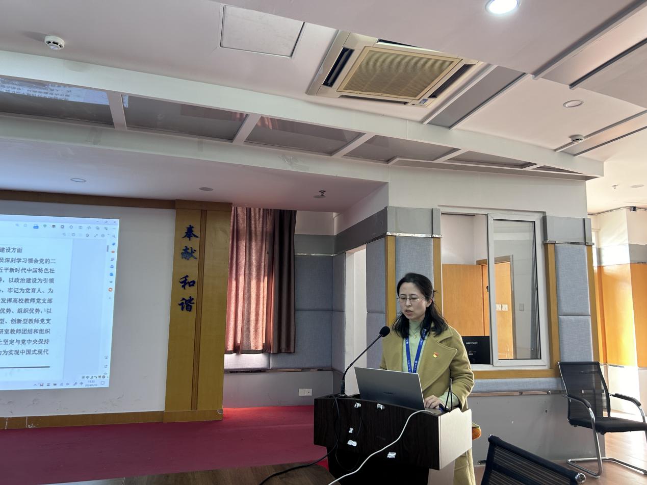 党总支书记高杰同志对各支部述职情况进行逐一点评。2024年是新中国成立75周年,是实现“十四五”规划目标任务的关键一年,就进一步加强学院2024年基层党建工作提出了三点要求:一是要加强思政引领,系统抓好理论学习,强化过程监督。持续深入贯彻党的二十大精神,推动学习贯彻习近平新时代中国特色社会主义思想主题教育成果转化,坚持用党的创新理论指导实践,以深化党建工作效能为抓手,以强化基层基础工作为依托,抓好《中国共产党纪律处分条例》学习贯彻,坚决捍卫“两个确立”,增强“四个意识”、坚定“四个自信”、做到“两个维护”。加强对党建工作的监督、检查,确保各项措施落地见效。二是要激发党建活力,大力推进党建品牌创建。突出服务中心,深化“一融双优”机制,推进党支部品牌创建,实现一支部一品牌。组织党员立足主责主业,紧扣目标任务,激发争先热情,增强创造活力,推动党的建设和学院中心工作有机结合、深度融合。三是要夯实基础抓示范,着力深化党支部规范化建设。进一步严格落实“第一议题”制度的要求,全力推进国家样板支部建设,精心准备验收工作;持续提升省级“双带头人”工作室、省级样板支部、学院党建示范点的建设内涵,争创省级党建标杆院系。