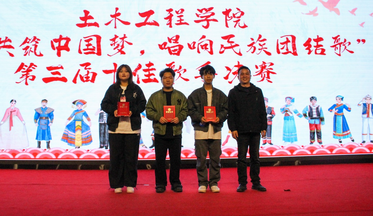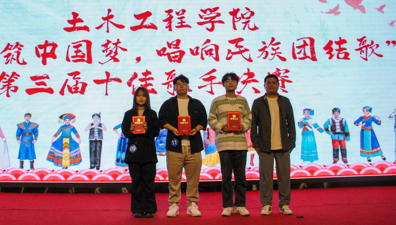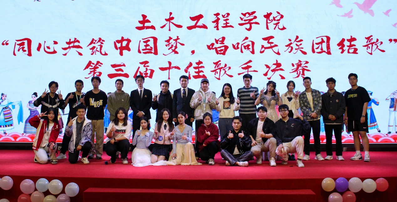 为展示我院美育成果,丰富校园文化生活,提升学生音乐表达能力,3月29日晚,土木工程学院成功举办“同心共筑中国梦,唱响民族团结歌”第三届十佳歌手决赛。参加本次活动的有学工处王剑老师、学院辅导员、少数民族代表及各班代表。