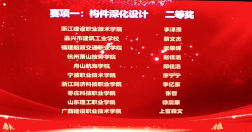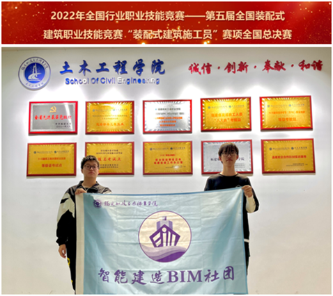 在支部党员高巧玲、王喆等教师团队的指导下,土木工程学院20级建筑工程技术专业张荣辉、叶绍龙两位同学晋级本项赛事的决赛阶段。在深化设计赛项和构件制作与安装赛项中均荣获全国二等奖,其中构件制作与安装赛项还取得本次福建省参赛院校的最好成绩。
