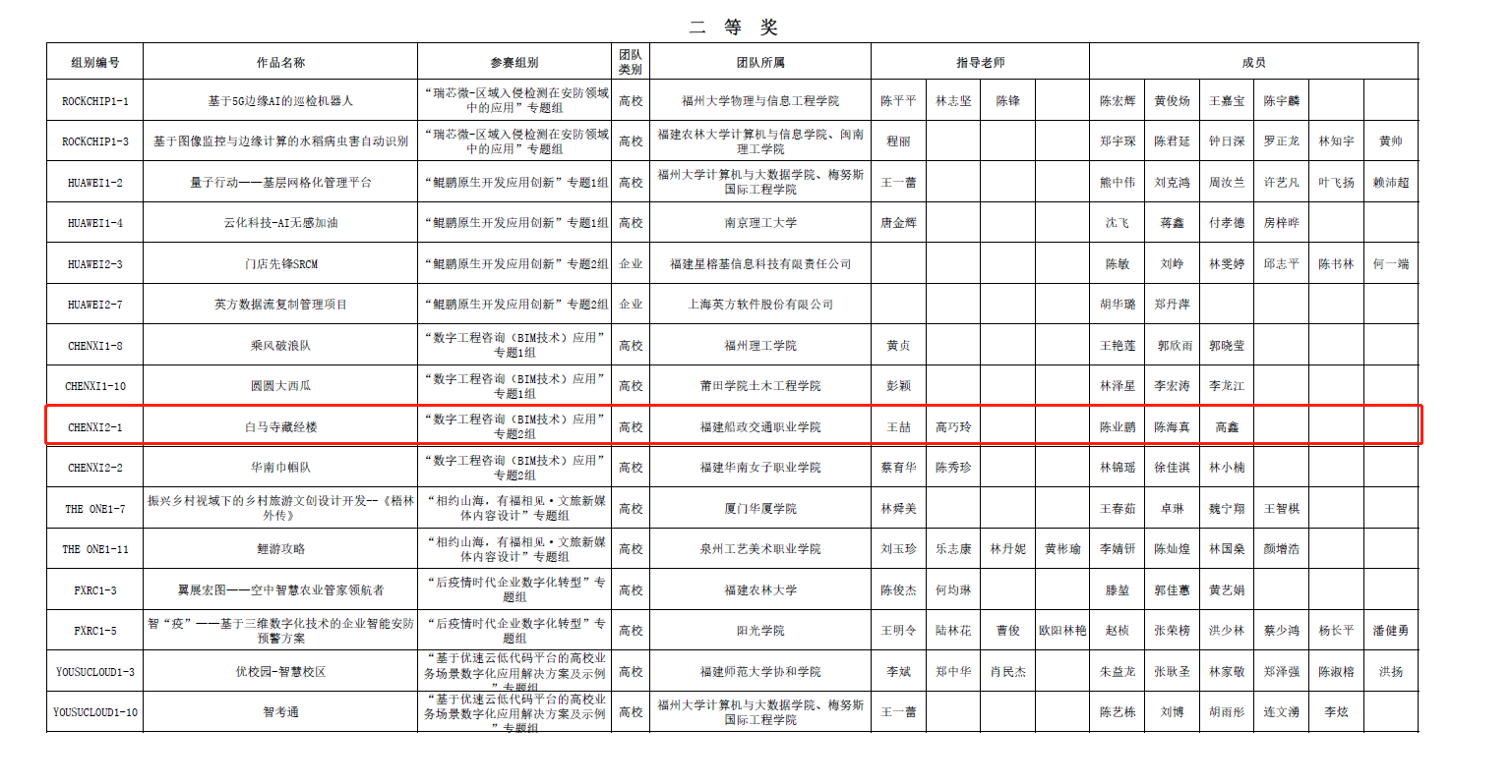 2022年12月3日,第十二届海峡两岸信息服务创新大赛暨福建省第十六届计算机软件设计大赛“数字工程咨询(BIM技术)应用”赛项决赛在福州软件园举行。大赛由福建省工业和信息化厅、福建省教育厅、福建省人力资源和社会保障厅、福建省商务厅、福建省科学技术厅、福建省委工会、共青团福建省委和福建省中华职业教育社等八厅委联合主办。因疫情原因,本项赛事通过线上竞赛的形式进行。福建省26所高校近200项作品参赛,经过激烈竞争,仅有12项作品晋级本项赛事的决赛阶段。