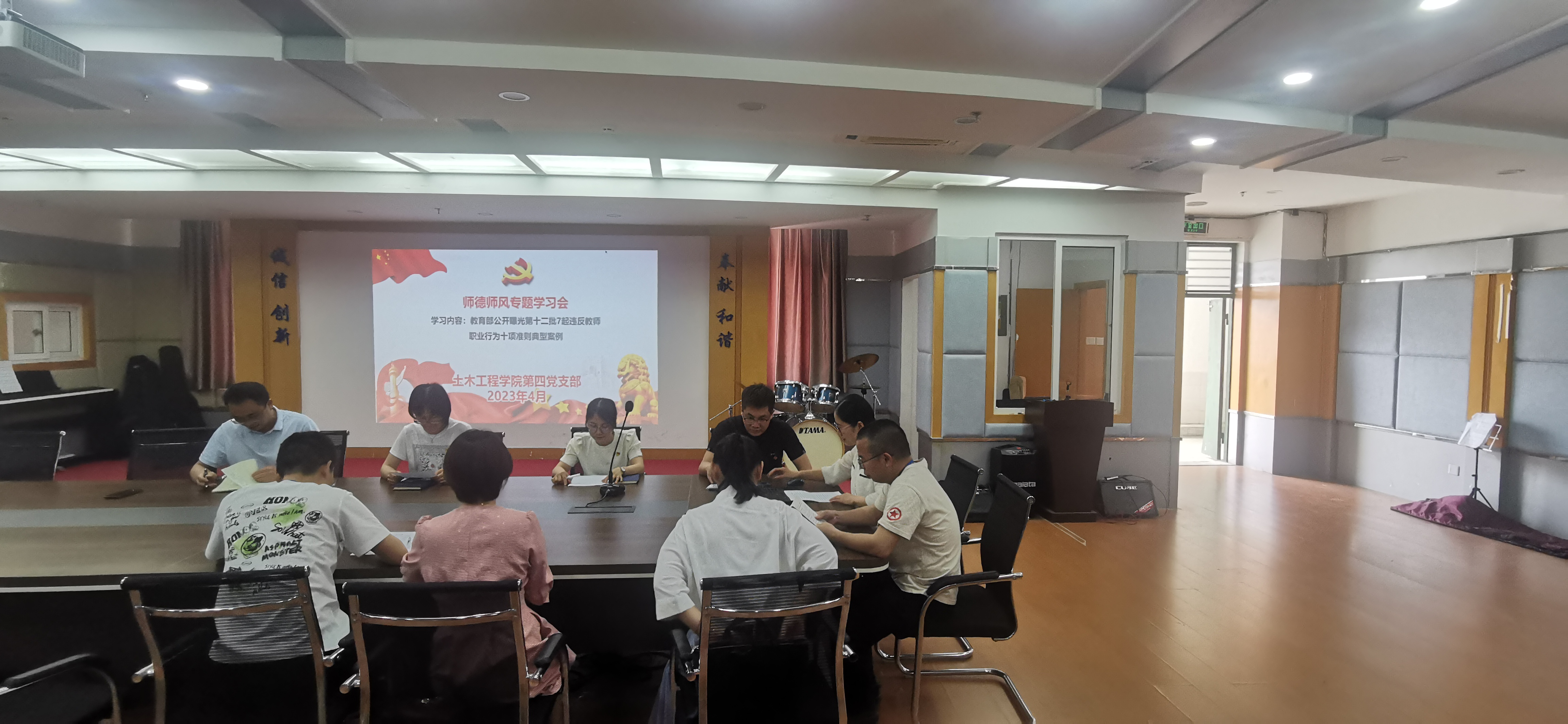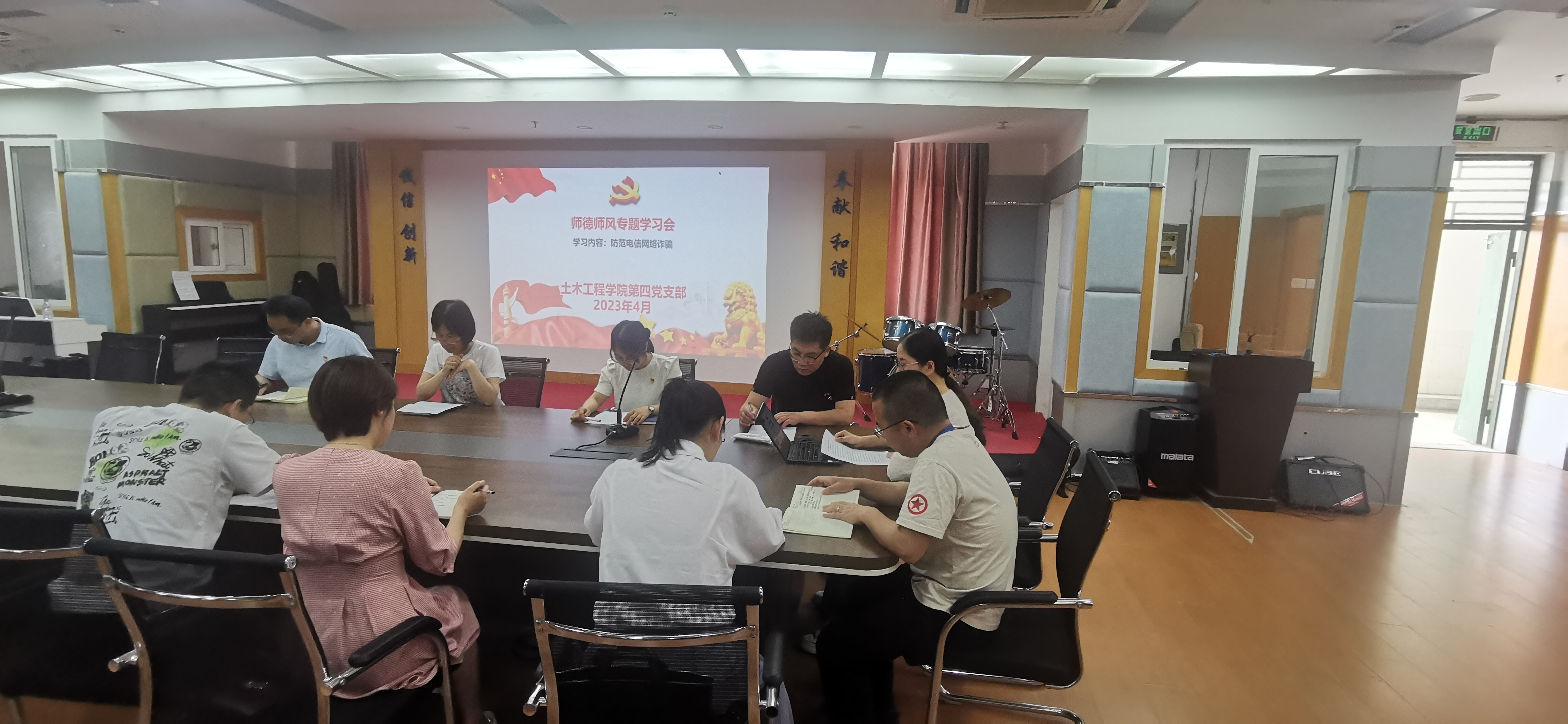 此次师德师风建设专题学习活动,明确了党员教师的角色定位和岗位职责,有效增强了党员教师的职业荣誉感,提高了党员教师的识骗意识和防骗能力。土木工程学院第四党支部将会进一步提高思想站位,做学生的表率,践行师德承诺,共同营造学校良好的师德师风建设氛围和风清气正的育人环境。